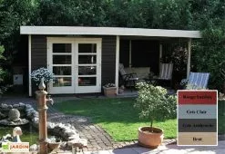 Ce cabanon de jardin est composé de parois de 28 mm d’épaisseur sur lesquelles repose une toiture plate en bois massif avec débords de toit de 6 cm (surface de la toiture : 6,13 m²). Si cette dernière est dépourvue de couverture, un revêtement auto-adhésif étanche vous est cependant proposé dans l’onglet « Accessoires ».