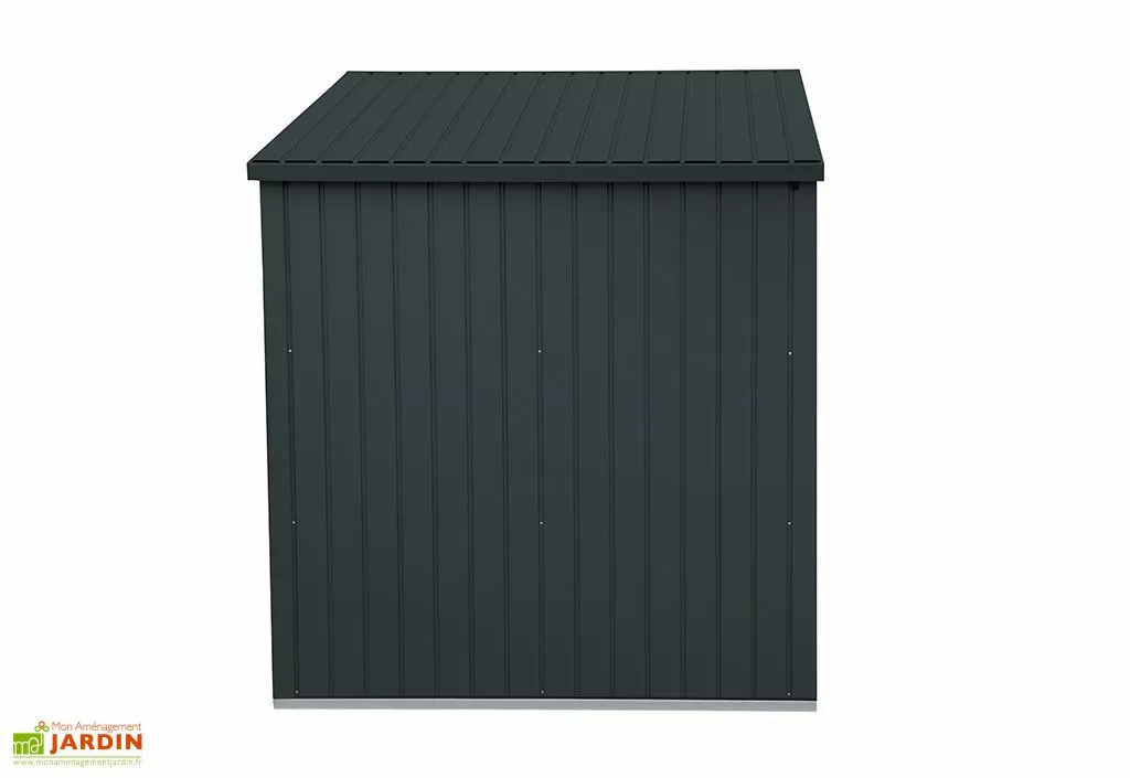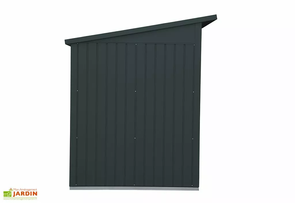 L’abri de jardin Duramax au design moderne s’intègre dans tous les jardins grâce à sa toiture monopente et à ses panneaux couverts d’une peinture gris anthracite RAL 7016. Son avancée de toit Skylight permet de faire entrer la lumière naturelle en créant un vrai puits de lumière.