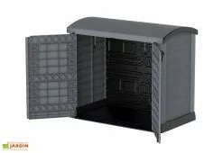 La porte battante comprend un vérin à gaz qui permet d’en amortir l’ouverture et la fermeture. Pour plus de solidité, elle est renforcée et doublée, avec une épaisseur de 33 mm. L’abri est sécurisé par la présence d’une serrure cylindre et de 2 clés.
