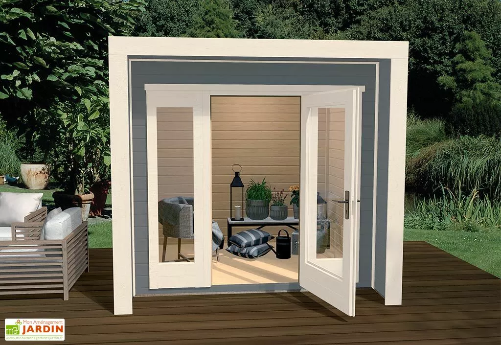Les solides parois de 28 mm d’épaisseur de cet abri de jardin design supportent une toiture plate (surface du toit : 6,13 m²) dont la légère inclinaison facilitera l’écoulement des eaux pluviales en cas d’averse. Cette toiture étant dépourvue de couverture, il est conseillé d’opter pour la membrane auto-adhésive proposée dans l’onglet « Accessoires » afin de garantir sa bonne étanchéité.