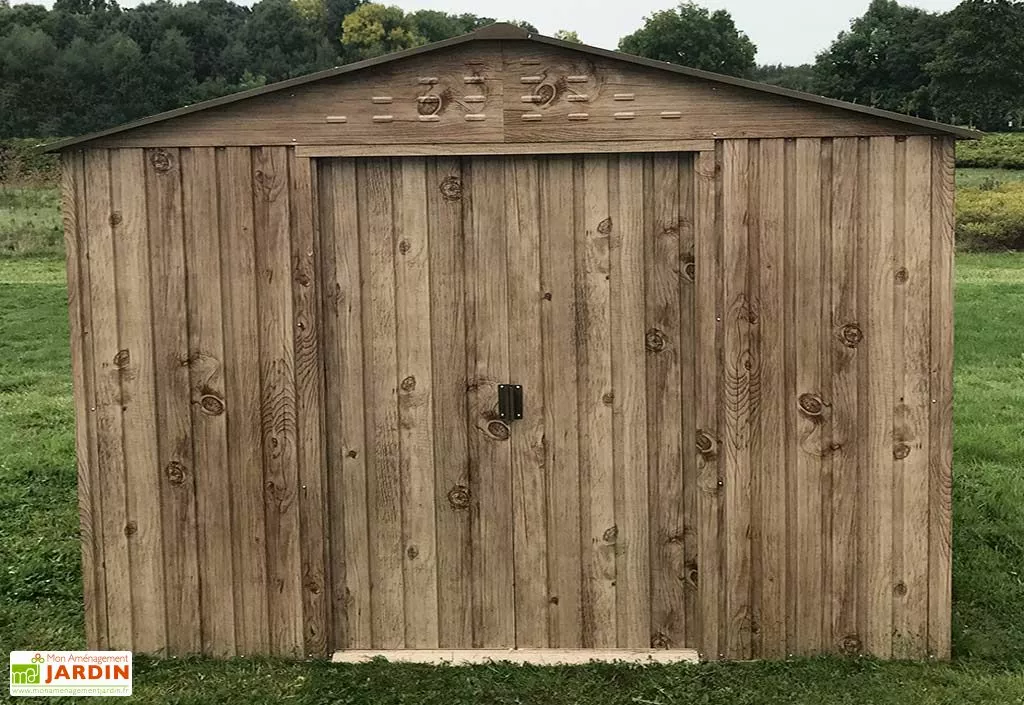 L’abri de jardin en métal est livré à monter soi-même. L’installation est à effectuer sur une dalle de béton ou sur une terrasse en bois, toujours à niveau. Le montage est facilité par une notice détaillée pas à pas et par l’identification de chaque pièce. Un kit d’ancrage spécial sol béton est inclus.