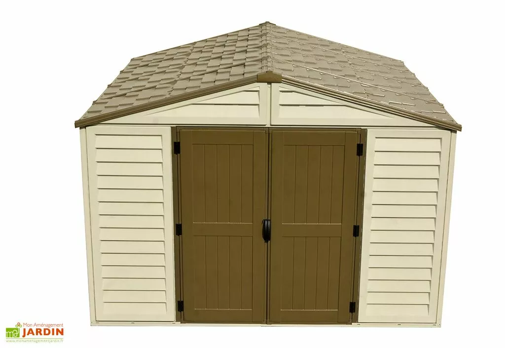 L’abri de jardin en PVC Duramax complète la gamme Woodstyle Premium. Il s’agit du modèle 10 x 10 qui mesure 3,26 m de profondeur, 3,25 m de largeur et 2,33 m de hauteur (dimensions hors tout). Il offre une surface utile de près de 10 m² grâce à ses dimensions intérieures de 3,13 x 3,13 m. Sa grande hauteur vous permet une utilisation confortable puisque vous n’avez pas à vous baisser lorsque vous êtes à l’intérieur.