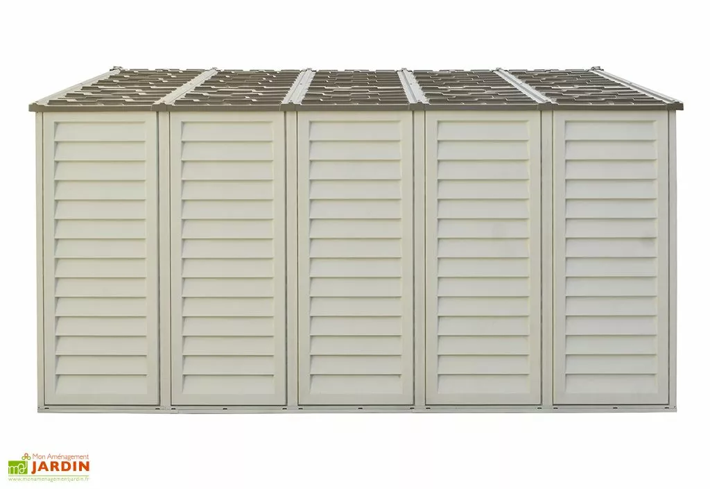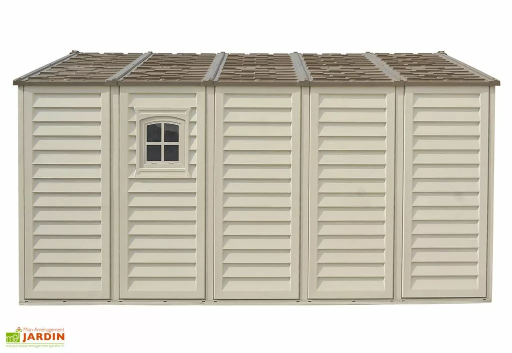L’abri de jardin est livré en kit. Le montage est facile et rapide à deux, grâce à une notice détaillée en français. La garantie est de 15 ans.