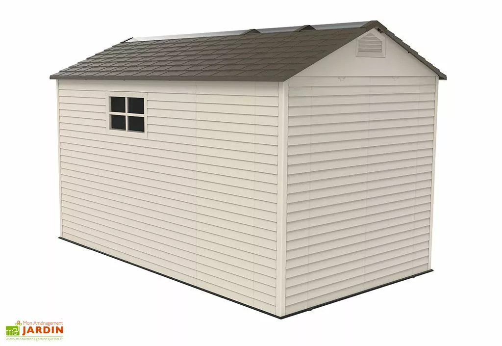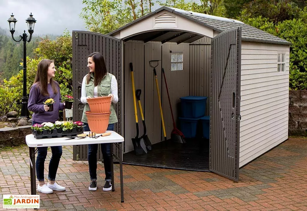 L’abri de jardin Landmark de Lifetime possède une surface de près de 8 m² grâce à ses dimensions de 3,65 m de profondeur, 2,13 m de largeur et 2,27 m de hauteur. Il est constitué de parois en HDPE (Polyéthylène Haute Densité) traité contre les UV, pour une grande solidité.