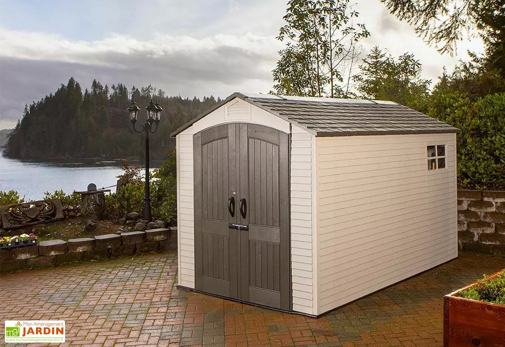 La cabane de jardin en résine est parfaitement équipée puisqu’elle comprend :