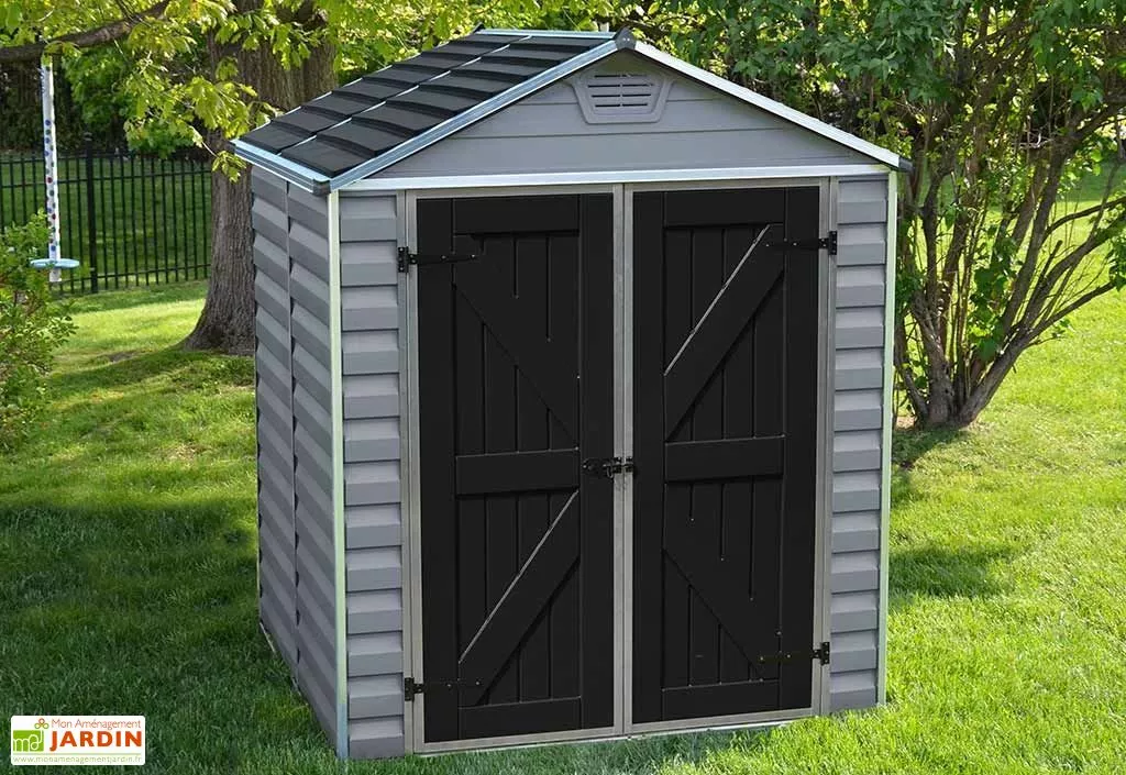 L’abri de jardin Skylight Deco 6×5 de la marque Palram-Canopia tient son nom de sa toiture originale. En effet, son toit est constitué de panneaux en polycarbonate solides qui laissent entrer la lumière naturelle. Le soleil éclaire l’intérieur de l’abri mais les panneaux restent opaques à l’extérieur. Ainsi, personne ne peut voir ce que vous stocker dans votre cabane et vous gardez vos équipements à l’abri du vol.