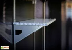 La maison de jardin design possède une toiture en polycarbonate qui laisse pénétrer la lumière naturelle à l’intérieur de l’abri. En effet, bien qu’opaques à l’extérieur, les panneaux de toit sont translucides à l’intérieur, tout en filtrant à 100% les UV. La toiture vous dispense l’utilisation d’une lumière électrique artificielle en pleine journée.