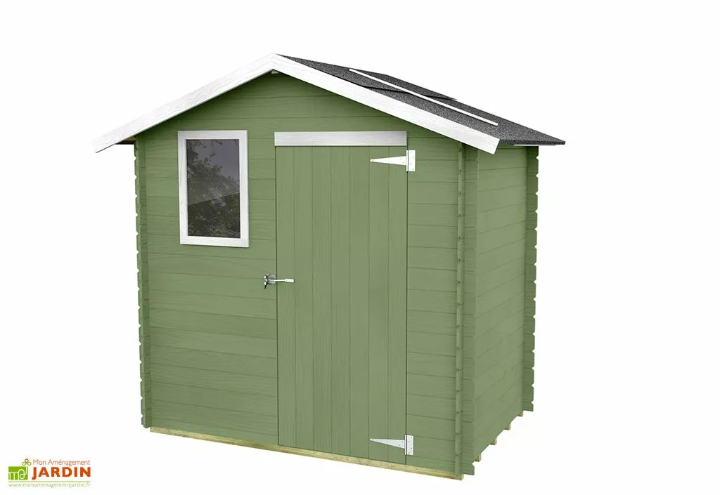 Parfait pour les petits extérieurs, ce cabanon de jardin mesure 1,98 m de large sur 1,30 m de profondeur. Il n’occupera donc qu’une surface de 2,57 m² une fois installé dans votre jardin. Ses parois de 16 mm d’épaisseur sont conçues en pin et sont lasurées (lasure à base d’eau), ce qui permet de protéger le bois contre l’humidité et les intempéries. Le plancher et le sous-plancher en OSB profitent quant à eux d’un traitement par autoclave chargé de les protéger contre les insectes, l’humidité et la moisissure.