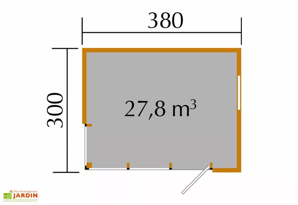 Votre abri de jardin de chez Weka a des dimensions de 3,80 m de longueur, 3 m de largeur et 2,20 m de hauteur. Le chalet en bois possède des madriers de 45 mm d’épaisseur. Il dispose d’une surface intérieure de 11,4 m². Le bungalow est équipé d’une porte vitrée de 82 cm de largeur et de 1,88 m de hauteur. La porte en verre est teintée et le verre possède une épaisseur de 8 mm.
