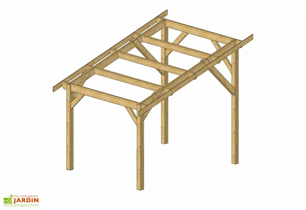 Ce modèle de carport est monté sur 4 poteaux qui sont tous équipés de pieds réglables. Il possède une hauteur de passage de 2,50 m ce qui vous permettra de protéger les petits utilitaires et autres camionnettes. Sa toiture est nue et pourra recevoir la couverture en acier galvanisé disponible dans les accessoires. Elle est également adaptée aux tuiles (chevrons non inclus). Un débord de 25 cm est présent sur les 4 côtés de l’abri.