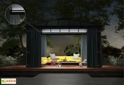 Le polycarbonate utilisé pour la conception des parois de ce cabanon de jardin possède également d’autres qualités intéressantes. Quasi incassables, ces panneaux ne se déformeront pas, pas plus qu’ils ne décoloreront. Ils sont en effet traités anti-UV, ce qui évite tout risque de jaunissement tout en protégeant l’intérieur de l’abri des rayons du soleil. Notez que l’accès à l’intérieur de l’abri se fera grâce à une double porte à seuil bas de 1,47 x 1,78 m qui pourra par ailleurs être verrouillée.