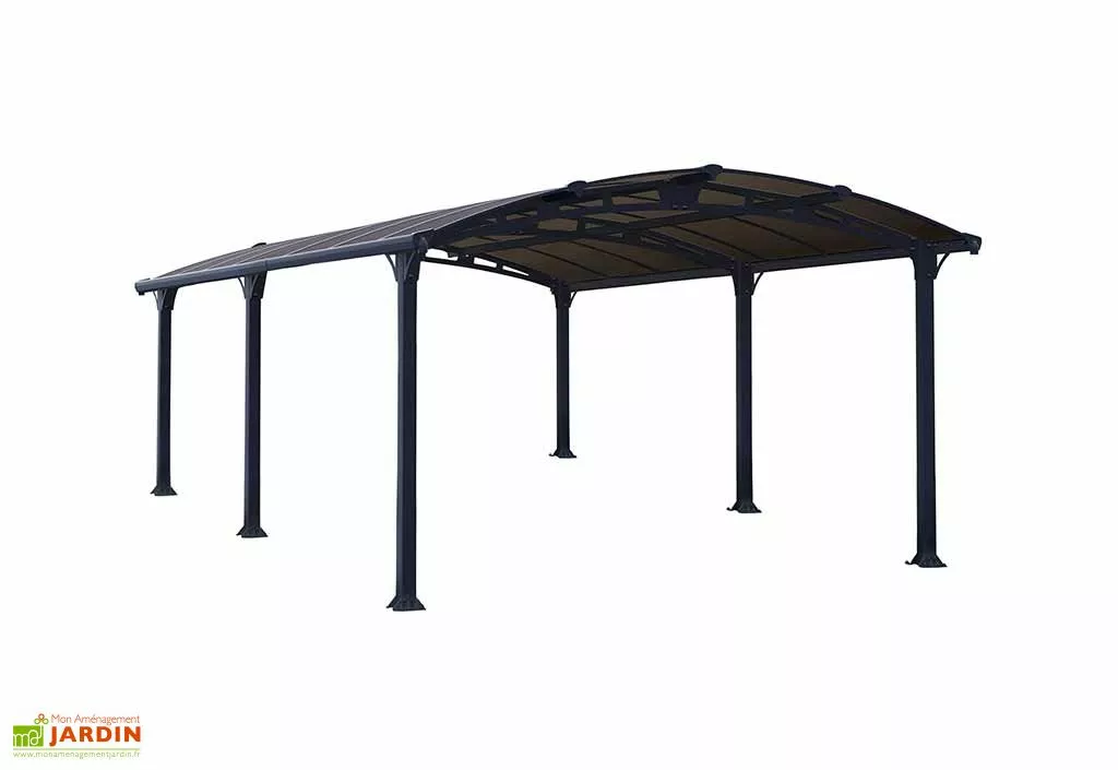 Le carport Arcadia de chez Palram-Canopia est conçu pour permettre le stationnement d’une voiture. Il couvre une surface de 18 mÂČ et possĂšde une solide structure en aluminium gris RAL 7016 ainsi que des connexions en acier galvanisĂ©, des matĂ©riaux insensibles Ă la rouille qui rĂ©sisteront parfaitement aux chocs et aux intempĂ©ries. Il offre une largeur de passage de 3,25 m et affiche une hauteur de 2,19 m.Â