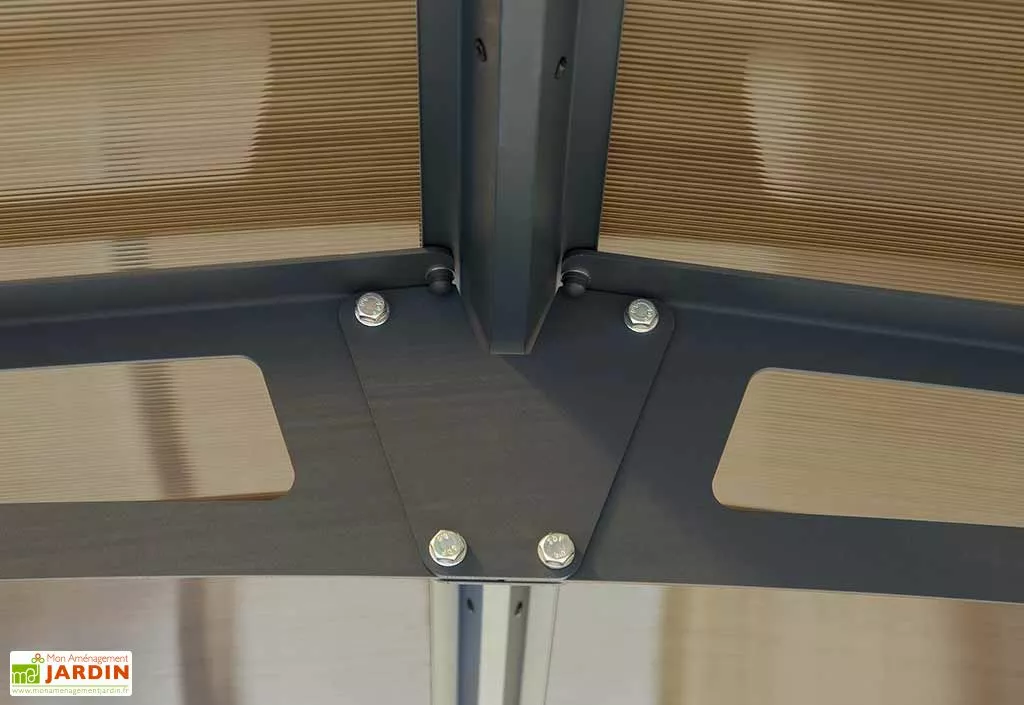 Sur cette structure reposent des panneaux en polycarbonate semi-transparent de 6 mm d’Ă©paisseur qui, en plus d’ĂȘtre quasi incassables, filtrent 100% des rayons UV. Ils ne jauniront donc pas au fil du temps, tout en protĂ©geant votre vĂ©hicule de ces rayons nocifs. Cette couverture est pensĂ©e pour rĂ©sister Ă une charge de 150 kg/mÂČ et pour affronter des vents atteignant les 100 km/h.