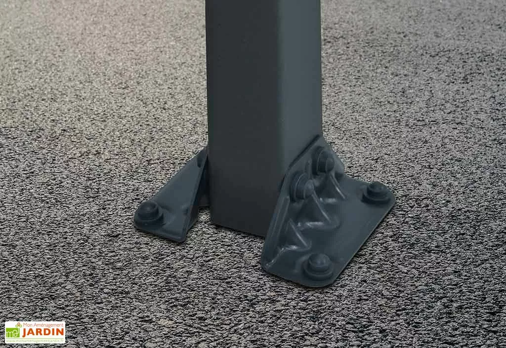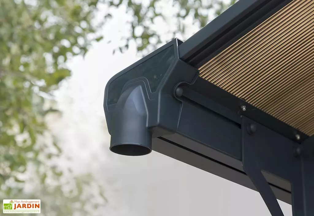 Facile Ă monter, ce carport est composĂ© de six poteaux carrĂ©s de 8 cm de cĂŽtĂ© chargĂ©s de soutenir l’ensemble de la structure. Les profilĂ©s sont prĂ©-percĂ©s, les panneaux prĂ©dĂ©coupĂ©s et conçus pour ĂȘtre assemblĂ©s aisĂ©ment en les faisant coulisser. Un systĂšme de gouttiĂšre est Ă©galement inclus, permettant non seulement l’Ă©vacuation de l’eau, mais aussi sa collecte. Notez enfin que tous les Ă©lĂ©ments nĂ©cessaires au montage du carport sont fournis.Â