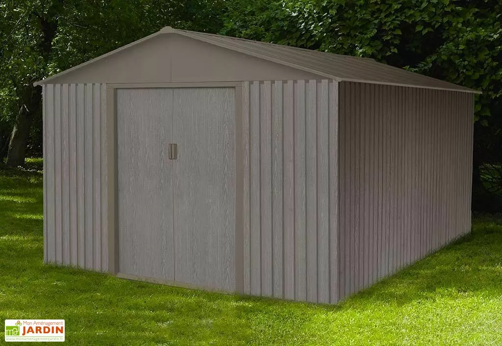 La cabane de jardin est en acier zingué à chaud et galvanisé. Elle résiste à la corrosion, à la moisissure et aux insectes, sans demander d’entretien. Elle mesure 4,21 m de profondeur, 3,21 m de largeur et 2,05 m de hauteur pour une surface de près de 14 m².