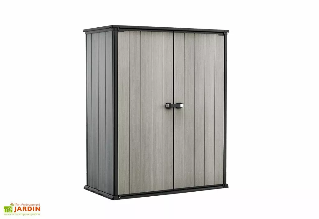 L’armoire de jardin haute Brossium de chez châlet-jardin est dotée d’une capacité de 1400 litres. Elle possède des dimensions totales de 140 x 73,6 cm (longueur, profondeur) sur 170,4 cm de hauteur. Elle affiche également des dimensions intérieures de 130,8 x 66,2 cm (longueur, largeur) sur 164,4 cm de haut. Cette armoire de jardin en résine possède une armature résistante en acier. Son design aspect bois poncé et vieilli lui donne un effet authentique qui s’intégrera parfaitement dans votre espace en plein air. Elle possède un joli coloris gris brossé (931), mais il vous sera quand même possible de la repeindre dans la couleur de votre choix !