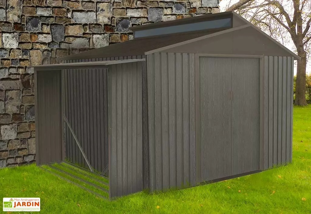 Le bucher dispose d’une surface intérieure de 1,07 m² grâce à des dimensions de 63 x 170 cm. La toiture est en acier galvanisé à chaud de 0,3 mm d’épaisseur également. Il possède l’esthétique du bois, sans ses inconvénients puisqu’il ne demande aucun entretien.