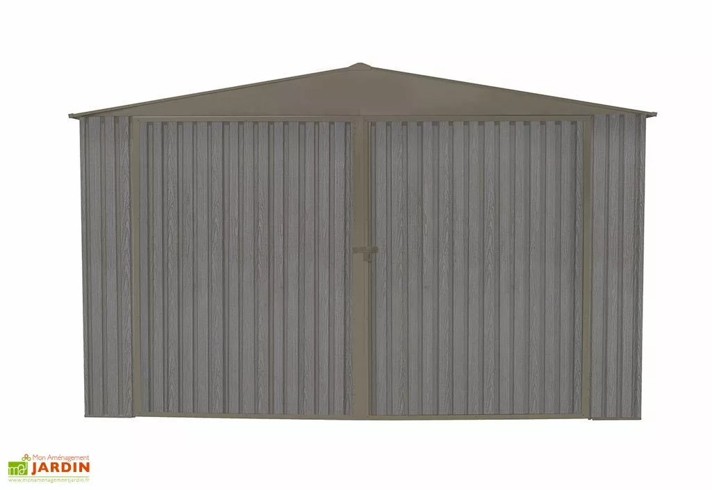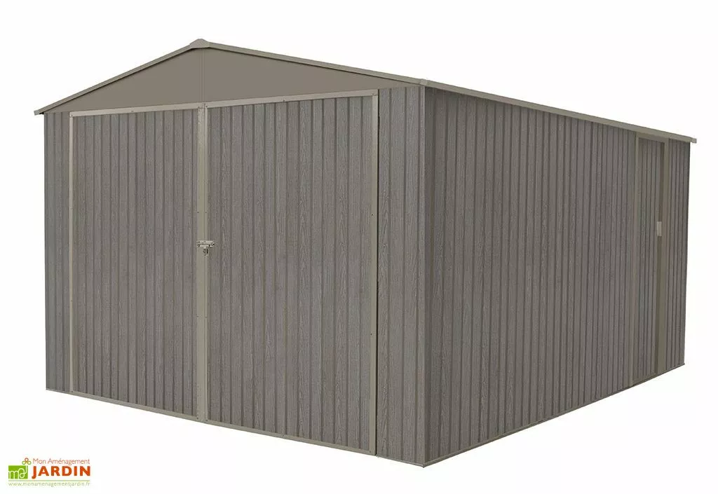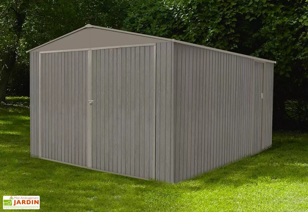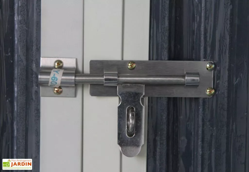 L’abri de jardin est en acier zingué à chaud et galvanisé pour une excellente résistance à la corrosion. Le métal imite parfaitement le bois, allant jusqu’à copier les veines du bois. Vous profitez ainsi des avantages esthétiques du bois sans ses inconvénients d’entretien.