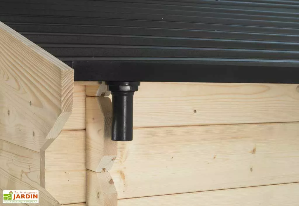 Votre gouttière pour l’ensemble des modèles d’abri de jardin Soleil en bois. Cette gouttière vous permet de protéger votre abri du ruissellement et des éclaboussures de la pluie.