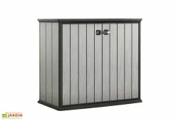 Le coffre de rangement extérieur est fabriqué en polyéthylène gris, un matériau qui ne demande aucun entretien. Il a bénéficié d’un traitement anti-UV qui lui permettra également de résister à la décoloration et à la fragilisation dues aux rayons du soleil.