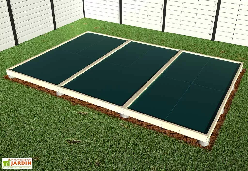 Ce plancher en bois est fabriqué sur mesure pour le studio de jardin Como de 19 m² de la marque Décor et Jardin. Conçu à partir de bois massif et d’OSB, il mesure 17 m² est livré sous la forme de trois modules que vous devrez assembler et traiter vous-même.