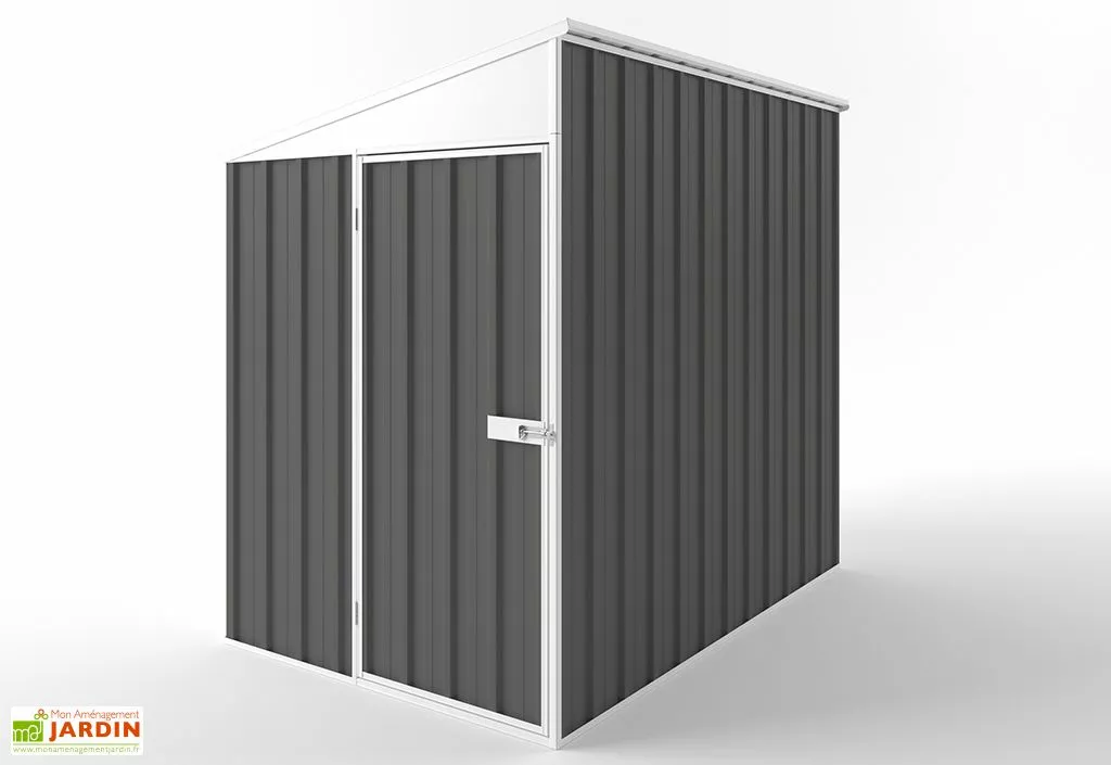 L’abri de jardin en métal Easyshed est un abri adossé qui mesure 2,25 m de longueur, 1,51 m de largeur et 2,10 m de hauteur. Il est équipé d’une porte battante simple de 75 x 180 cm (l,h). La cabane est compacte, elle dispose d’une surface de 3,40 m², elle est idéale pour les petits jardins et les terrasses.