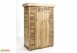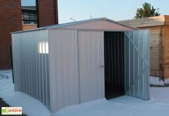 La cabane de jardin est équipée de deux grilles de ventilation et de deux portes de 75 x 175 cm, sécurisée par une serrure à clé, un vitrage en verre ainsi qu’un joint en silicone. Afin d’assurer sa solidité et son étanchéité, ses voliges sont en bois massif et couvertes de feutre bitumeux.
