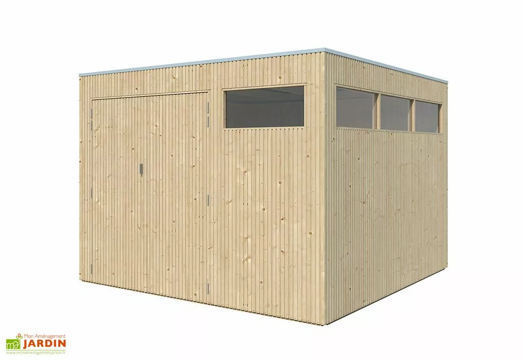 Les parois de cet abri de jardin en bois supportent une toiture plate en OSB recouverte d’un revêtement en EPDM. Cette toiture étant légèrement inclinée, elle facilitera l’écoulement de l’eau de pluie pendant une averse afin d’éviter les risques d’infiltration. Ces parois intègrent par ailleurs une double porte de 158,8 x 191,1 cm par laquelle vous pourrez pénétrer facilement à l’intérieur de l’abri, ainsi que deux fenêtres de 83 x 33 cm et 260 x 33 cm avec vitrages transparents.
