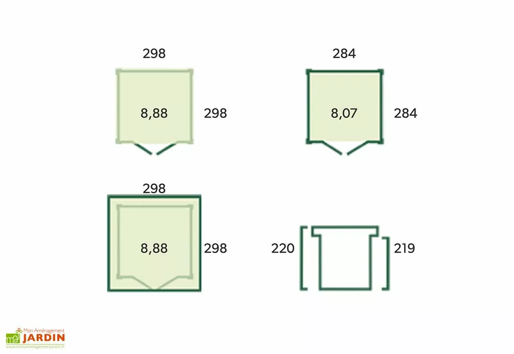 Livré en kit, cet abri de jardin devra être assemblé et monté par vos soins. Une notice de montage détaillée est fournie pour vous guider tout au long de l’installation. Notez enfin que le cabanon devra être monté sur une dalle de béton afin d’assurer sa bonne stabilité et que cette dalle devra mesurer 298 x 298 cm au minimum, soit les dimensions au sol de l’abri.