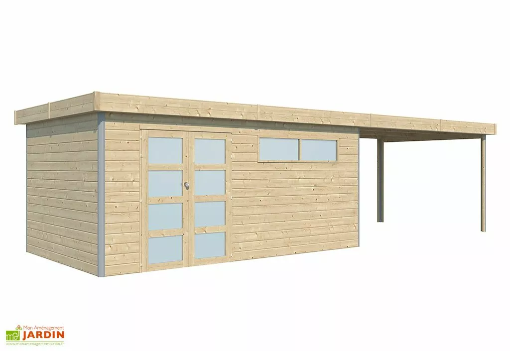 Ce grand abri de jardin s’est vu doté d’une toiture plate recouverte d’un bac acier laqué avec feutre anti-condensation. Parfaitement étanche, ce toit est de plus légèrement incliné afin d’assurer le bon écoulement de l’eau de pluie en cas d’averse. Notez enfin que cet abri en bois est livré en kit et qu’il devra par conséquent être monté par vos soins en suivant la notice détaillée fournie. Il devra être monté sur une surface dure et plate type dalle de béton, cette dernière devant mesurer au minimum 883,4 x 295 cm.