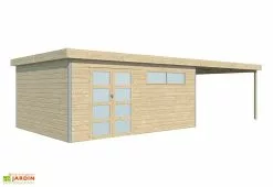 Cet abri de jardin Gardenas est équipé d’un auvent couvrant une surface de 12,76 m² (surface hors-tout) que vous pourrez aménager en espace de détente pour profiter au maximum de votre jardin. Le cabanon en lui-même offre un espace intérieur de 13,87 m² qui pourra être transformé en atelier ou en remise de jardin pour ranger votre matériel de jardinage, vos outils ou du mobilier de jardin, par exemple. L’abri et l’auvent occuperont donc une surface totale de 29 m² une fois installés dans votre jardin.