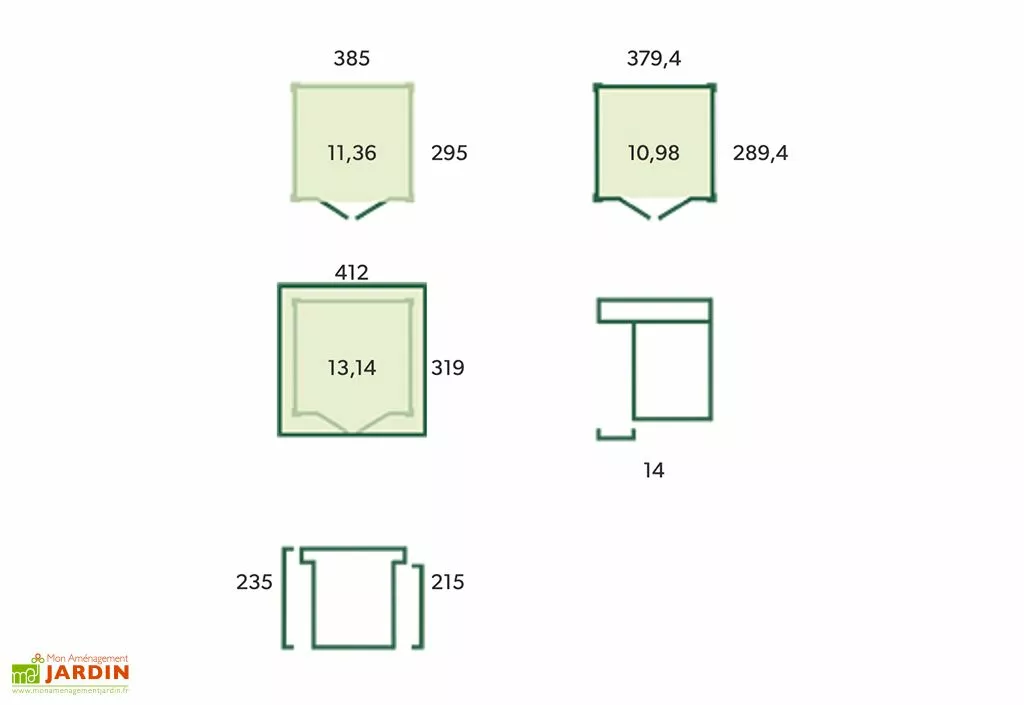 Ce cabanon de jardin est livré en kit, à monter soi-même, à l’aide de la notice détaillée qui vous sera fournie. Il devra impérativement être installé sur un sol dur et à niveau, type dalle de béton, et celle-ci devra mesurer 385 x 295 cm minimum. Une fois installé dans votre jardin, cet abri en bois occupera une surface au sol de 11,3 m².