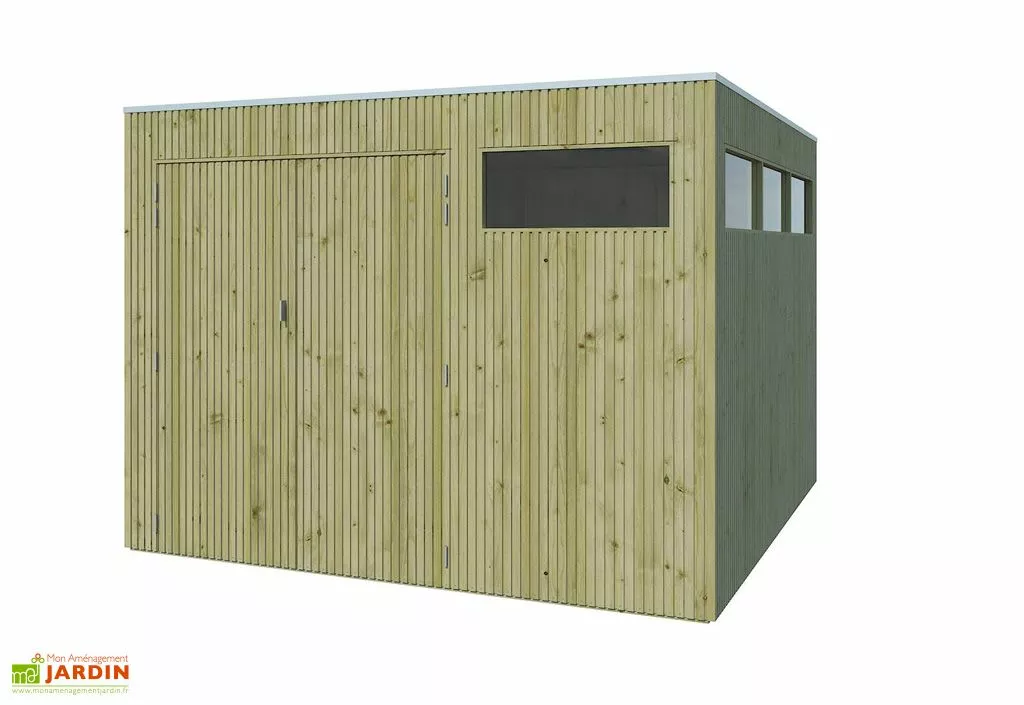 Cet abri de jardin en bois Qube allie respect de l’environnement et design. Muni du label FSC, ce bois est issu de forêts gérées durablement. Son bardage vertical élégant est composé d’épicéa massif de 26 mm d’épaisseur : ce bois bénéficie d’un traitement par autoclave classe 3, le protégeant jusqu’au cœur de la fibre contre la moisissure, les insectes et la pourriture. Vous pouvez appliquer un traitement hydrofuge pour protéger l’abri contre la pluie et les fissures qui pourraient en découler. Il pourra également être peint ou lasuré si vous le souhaitez.