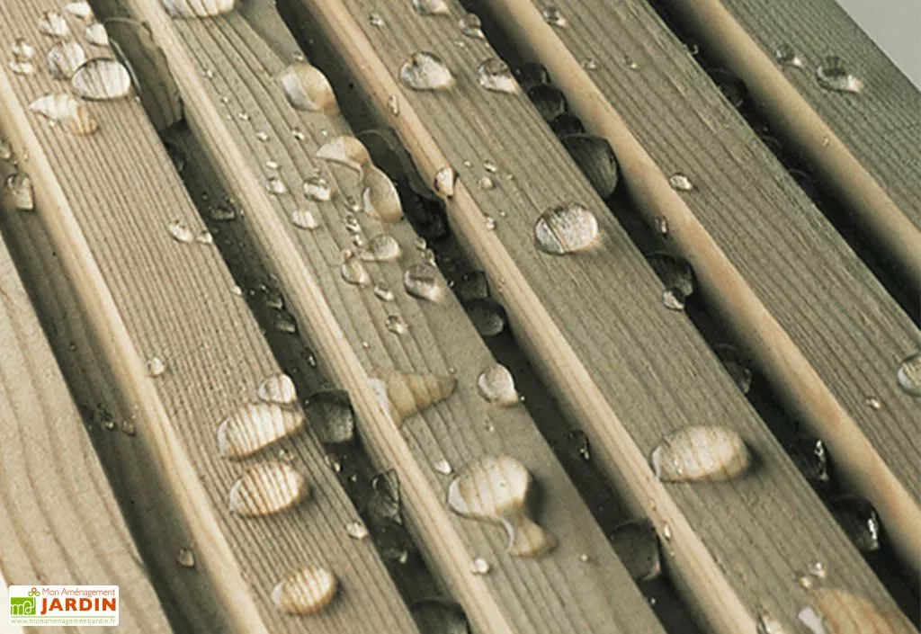 Le chalet est composé de bois traité autoclave. Ce dernier se présente sous forme de madriers à emboîter de 28 mm d’épaisseur et dispose d’une certification FSC, ce qui vous promet qu’il a été produit dans une démarche durable et respectueuse des forêts. L’abri possède des coins hermétiques au vent qui lui assurent une solidité supplémentaire. Le traitement qu’il a reçu lui procure une excellente résistance aux champignons, à l’humidité et aux insectes.