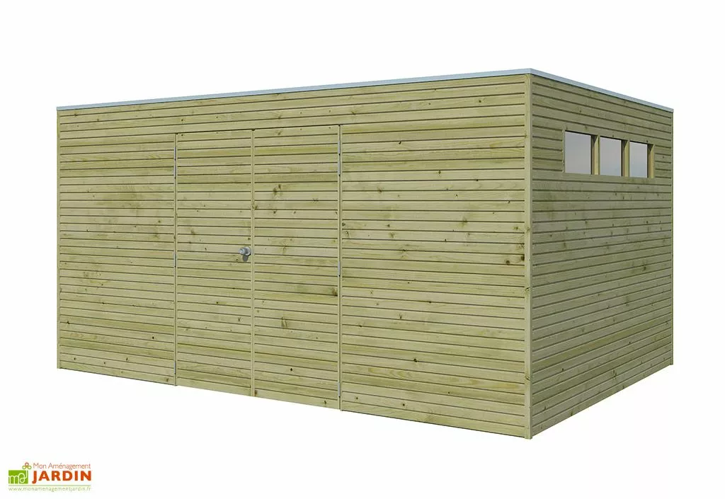 Le chalet de jardin ne possède pas de plancher. Il sera nécessaire de l’installer sur un sol dur et à niveau de 4,2 x 3 m minimum. L’abri est garanti 2 ans.