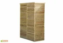 L’armoire de rangement en bois Venice de chez Gardival s’installe sur votre terrasse ou directement dans votre jardin. Elle mesure 60 cm de profondeur, 125 cm de largeur et 183 cm de hauteur. L’armoire est bois traité autoclave pour une excellente résistance à la moisissure et aux attaques d’insectes.