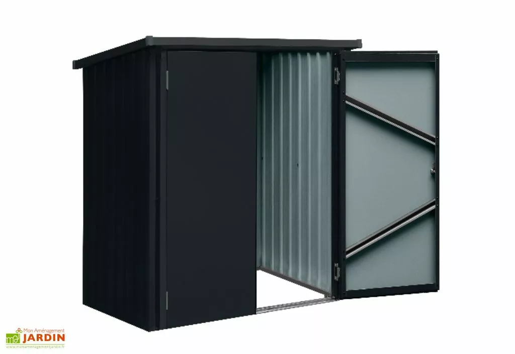 L’abri de jardin de la marque Givex ne prendra pas beaucoup de place dans votre jardin puisqu’il mesure seulement 147 x 86 cm, pour 134 cm de haut, soit une surface intérieure de 1,30 m². Il est fabriqué à partir de panneaux en métal de 0,6 mm d’épaisseur. Les deux portes de 130 x 141 cm vous permettront d’accéder aisément à l’intérieur pour entreposer vos outils de jardin, vos vélos ou autres équipements. Elles sont dotées d’une serrure.