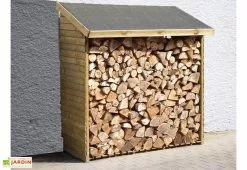 L’abri bûches est livré sans fond et doit être adossé à un mur. Le toit de l’abri possède une couverture en papier bitumé. Il est garanti 5 ans contre le pourrissement.