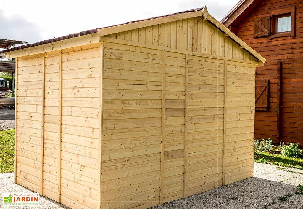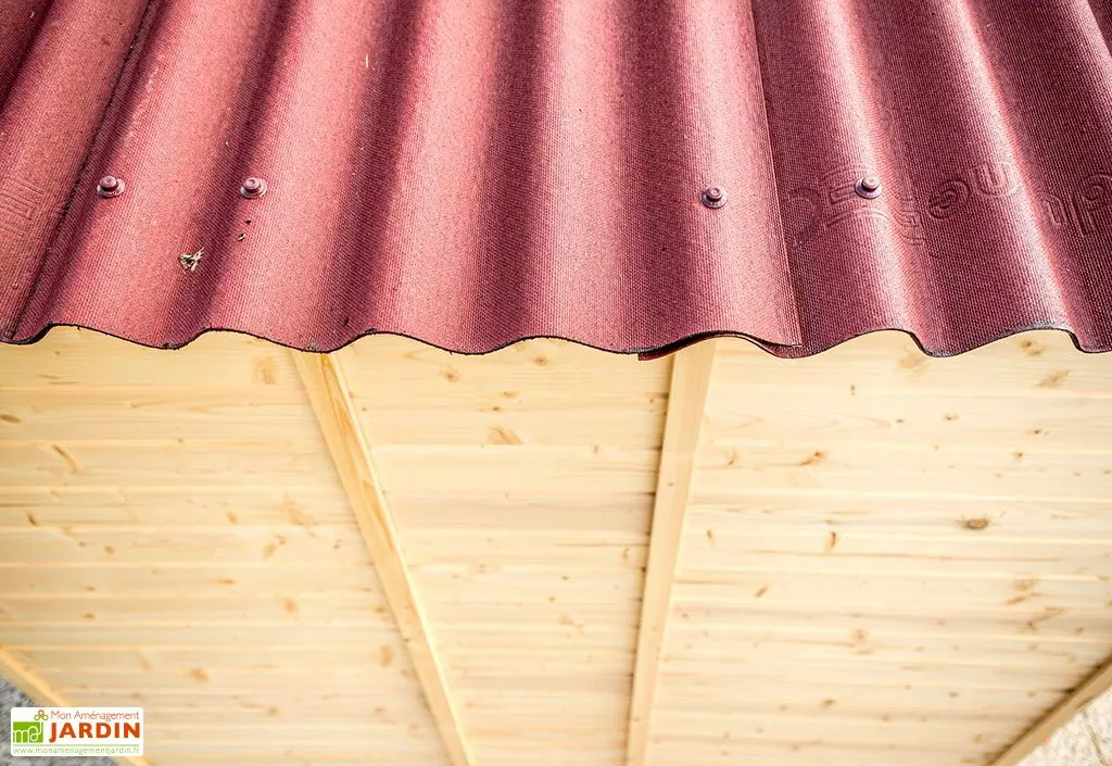 Les parois de cet abri en bois prennent la forme de panneaux de 16 mm d’épaisseur faciles à assembler. Ces cloisons intègrent une double porte vitrée de 1,60 m de large et supportent une toiture à deux pans avec couverture en plaques ondulées bitumées, pour une meilleure étanchéité. Le tout étant livré en kit, vous devrez procéder au montage de cet abri vous-même.