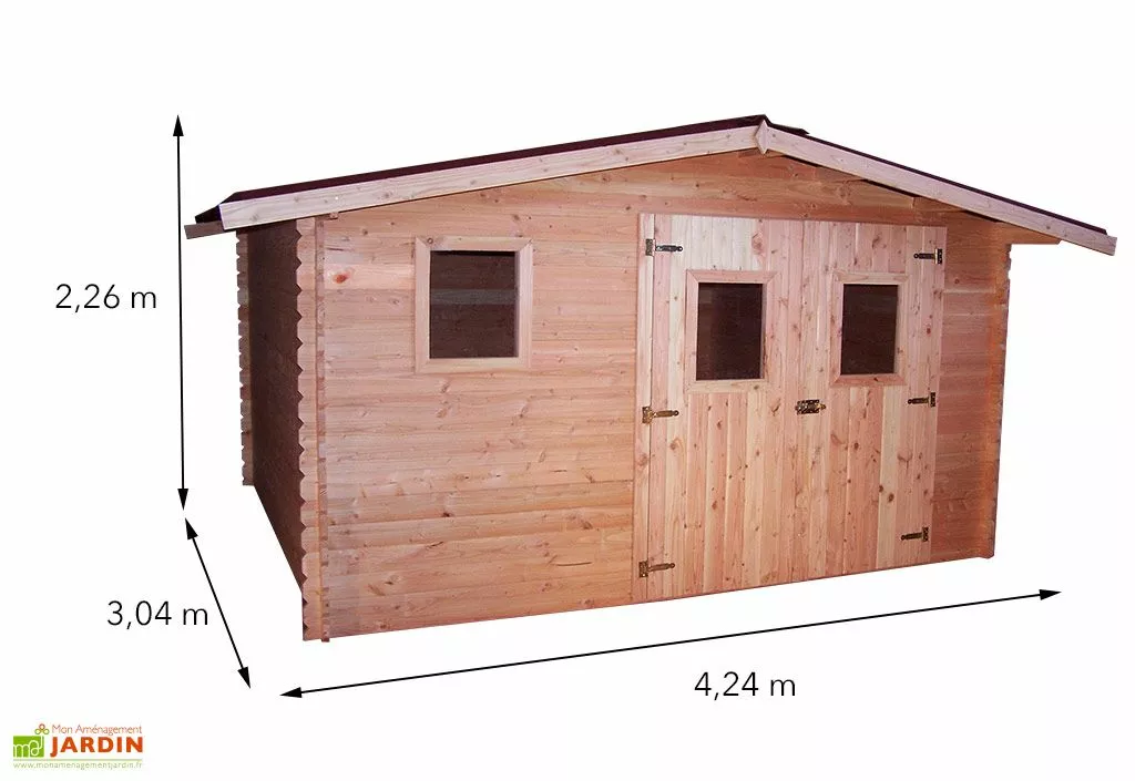 - Surface totale : 12,89 m² – dimensions hors tout : 4,24 x 3,04 x 2,26 m (l x p x h)