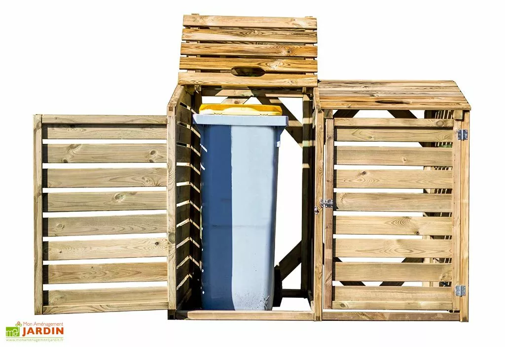 Le cache-poubelle double en bois de chez Habrita est une solution esthĂ©tique pour ranger vos poubelles disgracieuses. En pin traitĂ© autoclave classe 3, votre cache poubelle sâadosse Ă un mur. L’arriĂšre du cache poubelles est ouvert, il est Ă©quipĂ© de croisillons. Le couvercle Ă rabat permet une utilisation plus facile. Ses dimensions sont de 1,50 x 0,90 x 1,20 m (l,l,h). Les lames de cĂŽtĂ© possĂšdent une Ă©paisseur de 8 mm et les lames du couvercle possĂšdent une Ă©paisseur de 14 mm. Il est garanti 5 ans.