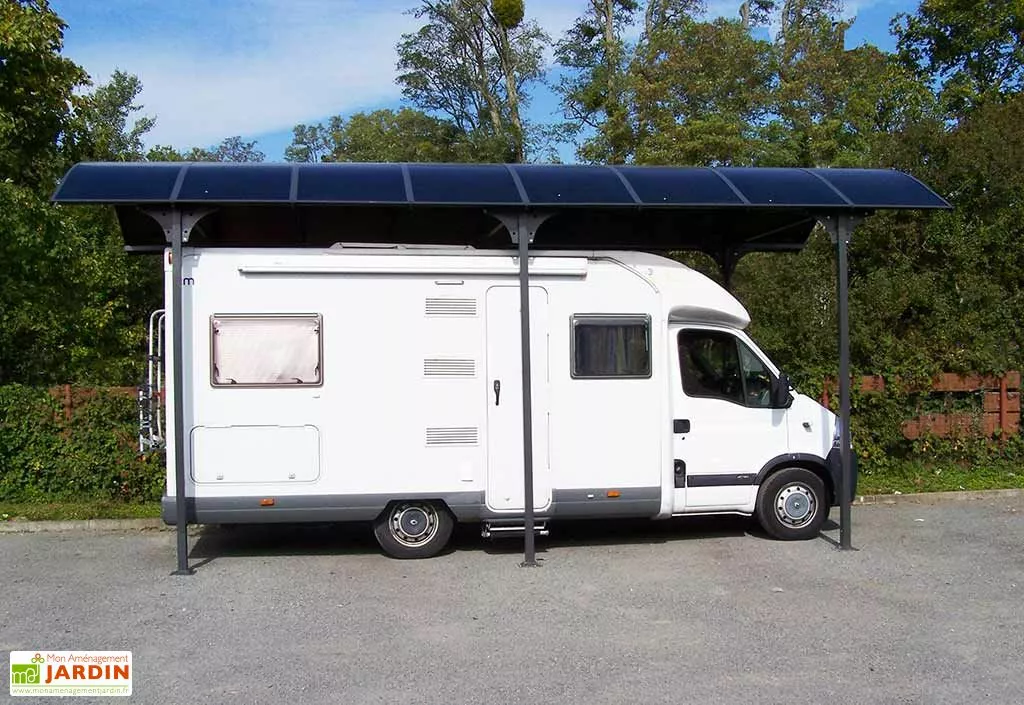 La toiture du carport est en tôle de polycarbonate de 6 mm d’épaisseur. La toiture laisse passer la lumière sans laisser passer la chaleur ni les UV. Le carport permet de protéger votre camping-car, camionnette, caravane ou encore bateau de la neige, de la pluie, des UV et des fortes chaleurs.