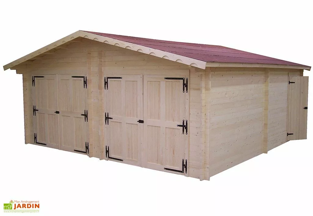 Les parois sont constituées de madriers emboités de 60 mm d’épaisseur. Le bois utilisé pour la conception du garage double est brut, il est nécessaire de lui appliquer une lasure et/ou un traitement fongicide et insecticide pour le protéger contre les agressions extérieures. Le bois est certifié FSC, issu de forêts gérées durablement.