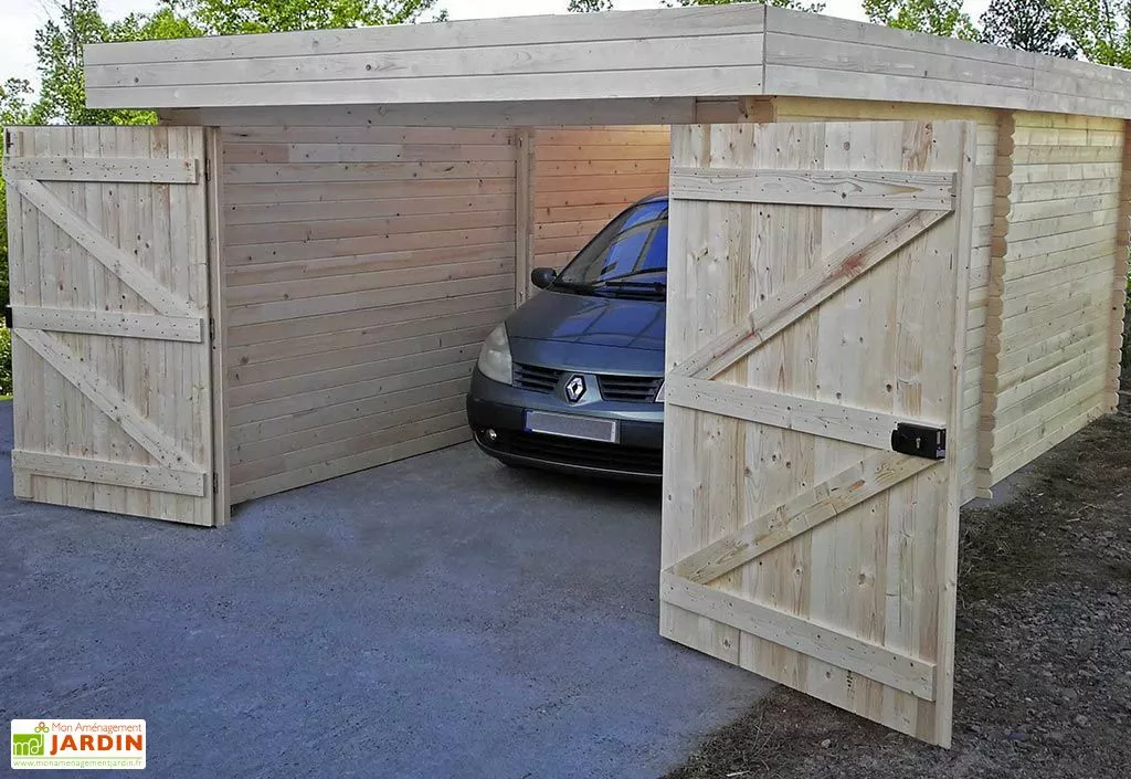 Ce garage au design moderne offre une superficie intérieure de 17,35 m², soit suffisamment d’espace pour accueillir un véhicule. Il occupera par ailleurs une surface de 21,46 m² une fois installé. Livré en kit, ce garage en bois pourra être monté par vos soins ou par un professionnel, si besoin. Une prestation de montage est en effet proposée en option, et rallongera le délai de livraison de quatre semaines.