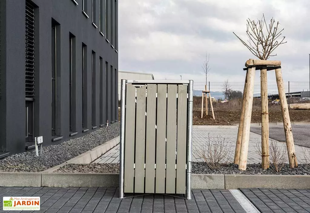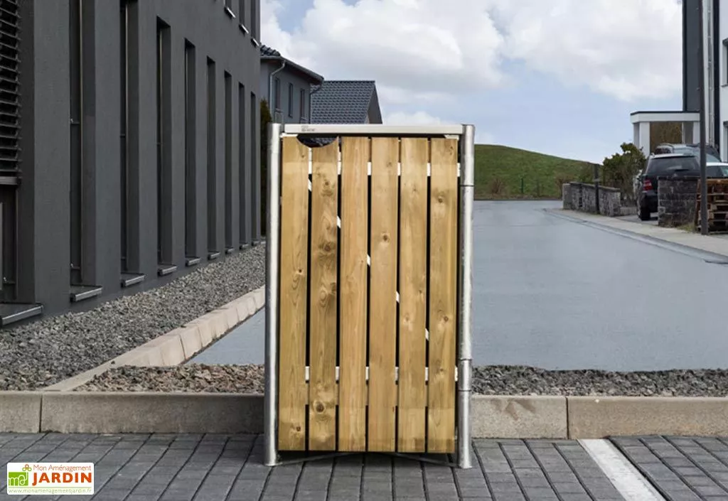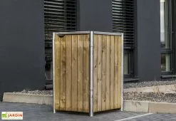 Conçu pour résister aux intempéries, cet abri pour poubelle mobilise une armature en acier galvanisé associée à des parois en bois de pin traité par imprégnation. Ainsi traité, le bois ne craindra ni l’humidité, ni les insectes ou champignons susceptibles de le détériorer. Notez enfin que le bois utilisé est certifié FSC, ce qui signifie qu’il est issu de forêts gérées de façon écoresponsable.