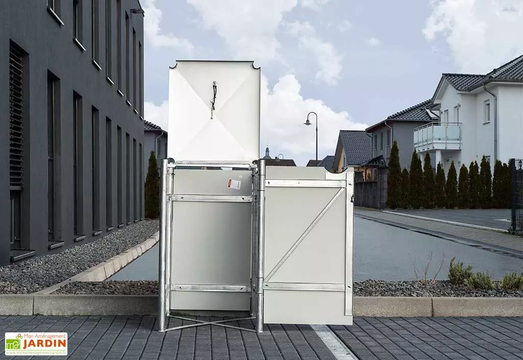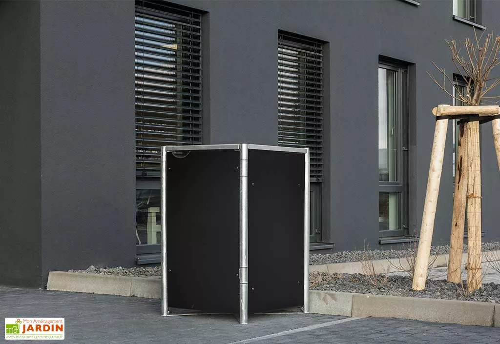 Disponible en noir ou en gris, ce cache-poubelle de la marque Hide est conçu pour accueillir un conteneur d’une capacité de 140 L. Il dispose à ce titre d’une porte frontale et d’un couvercle permettant de remplir et de sortir facilement la benne. Vous pourrez ainsi placer votre poubelle hors de vue et à l’abri des agressions extérieures.