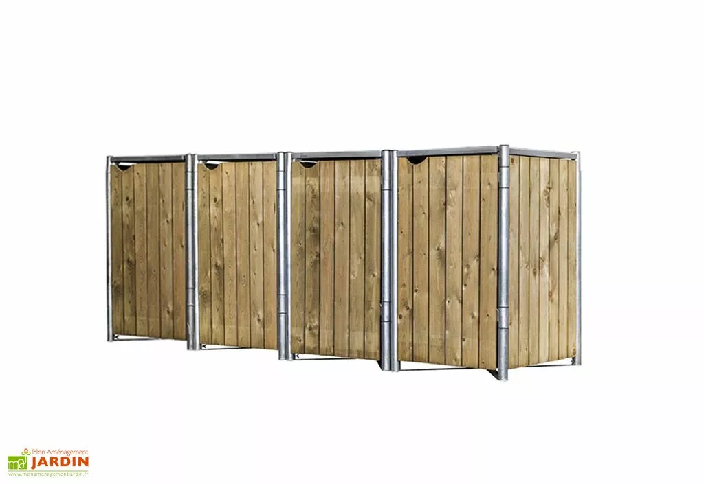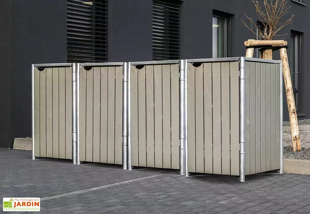Proposé dans une finition bois naturel ou gris clair, ce cache-poubelles de la marque Hide pourra accueillir jusqu’à quatre conteneurs de 140 L. Il mesure 241,6 x 63,4 cm, pour 115,2 cm de haut, et dispose de portes frontales et de couvercles permettant de remplir et de sortir chaque poubelle individuellement et en toute simplicité. Livré en kit, il devra être assemblé et installé par vos soins.