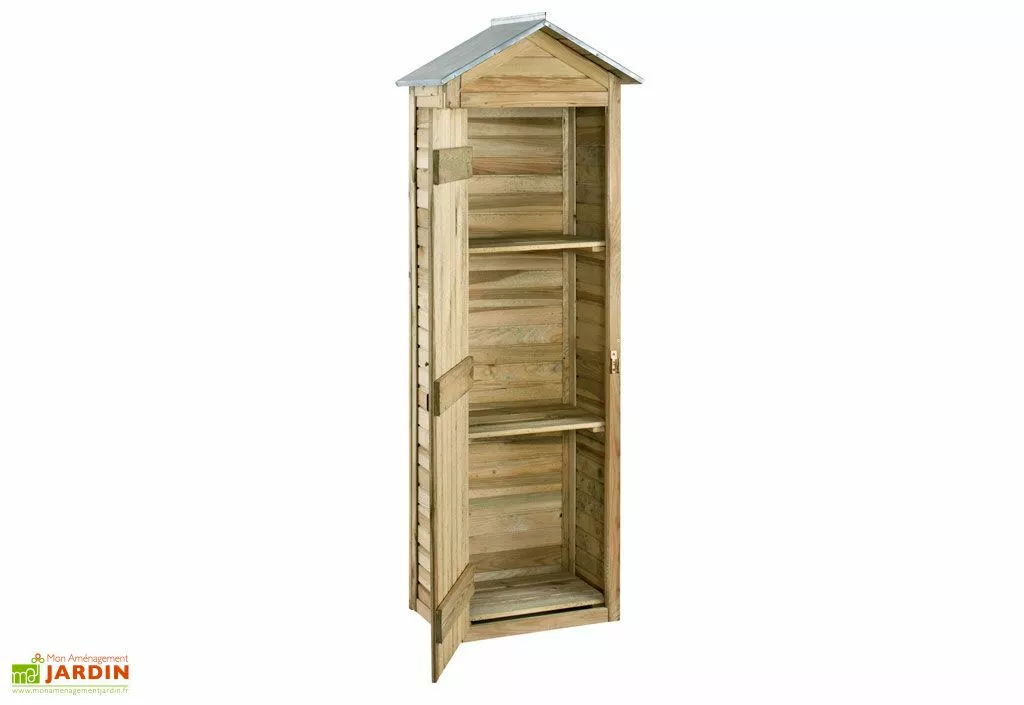 Idéale pour entreposer vos outils et votre matériel de jardinage, cette armoire d’extérieur offre une capacité de stockage de 0,26 m³ (dimensions intérieures : 31 x 50 x 170 cm). Elle affiche des dimensions au sol de 36 x 54 cm (dimensions hors-tout : 43 x 63 cm), pour une hauteur totale de 181 cm, et intègre deux étagères. Le tout pourra d’ailleurs être fermé à l’aide du verrou dont est équipée la porte. Notez enfin que ce rangement d’extérieur vous sera livré en kit et qu’il devra dès lors être assemblé par vos soins (notice détaillée et accessoires de montage inclus).