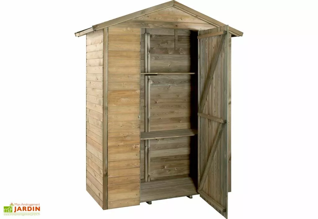 Grâce a son faible encombrement au sol, sa grande praticité et ses 2 étagères de rangement (incluses), cette armoire de rangement extérieure vous simplifiera l’accès à tout votre matériel de jardin. Cette armoire vous sera livrée pré-assemblée avec sa notice de montage détaillée en français, son fond, ainsi que sa visserie en acier galvanisé et ses accessoires de fixation.