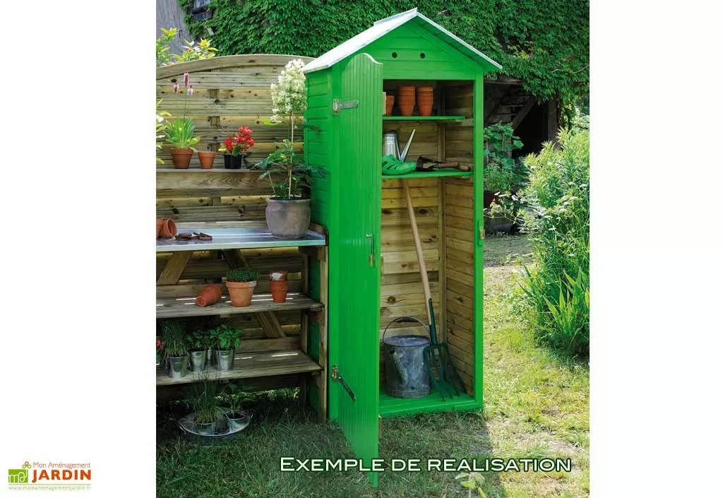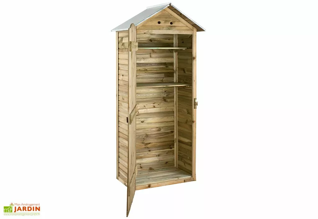 Votre armoire de jardin vous offre une capacité de stockage de 0,63 m³ et possède 2 étagères ainsi qu’un plancher. Vous pourrez donc profiter de cet espace pour stocker tous vos outils, tout en les protégeant des intempéries grâce à son toit en bois recouvert de plaques de zinc pour une étanchéité à toute épreuve. Cette armoire de jardin est donc une solution de rangement compacte et sécurisante, offrant toutefois une belle capacité de stockage.